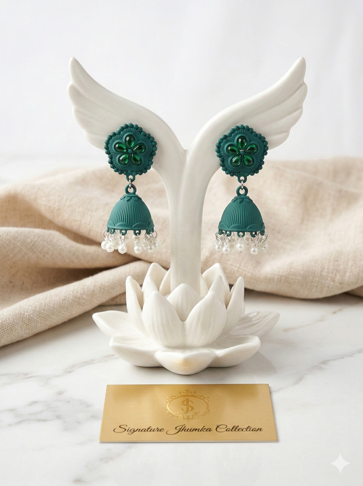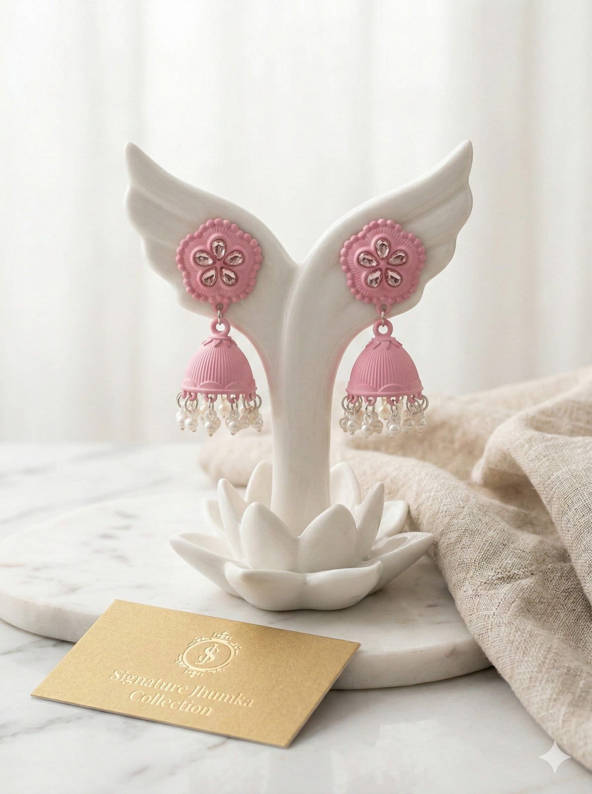 Make a bold statement with our Signature Matte Crimson Jhumkas. Combining traditional Indian craftsmanship with a contemporary matte finish, these earrings are designed for the woman who loves a touch of drama with her elegance. Featuring a vibrant red hue and delicate pearl accents, they are the perfect accessory to elevate your festive or bridal look.